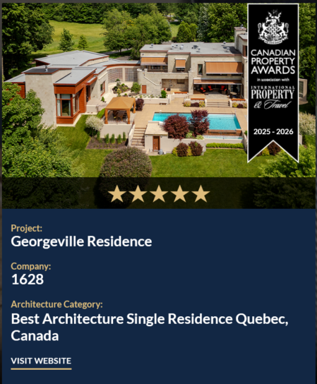 1628 remporte le prix Best Architecture Single Residence – Québec, Canada aux Americas Property Awards.